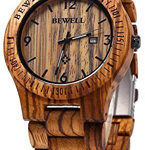 BEWELL Wood Watches for Men Analog Quartz Date Retro Handcraft Lightweight Wooden Wristwatch W154A