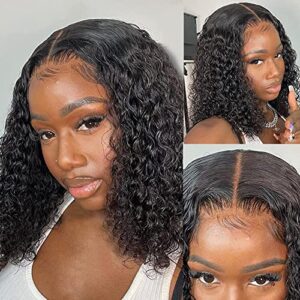 BEULADY Curly Bob Wig Human Hair Transparent Lace Closure Wigs 4x4x1 Curly Bob Wig Human Hair Pre Plucked With Baby Hair 150% Density Wigs For Black Women Human Hair (10, 4XT curly BOB)