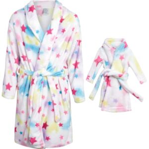 BFF & Me Girls Bathrobe – Tie Dye Fleece Robe and Matching Robe for Doll (Size: 4-12)