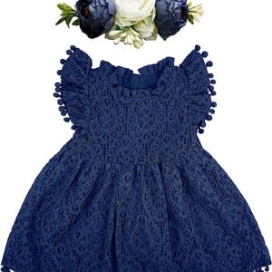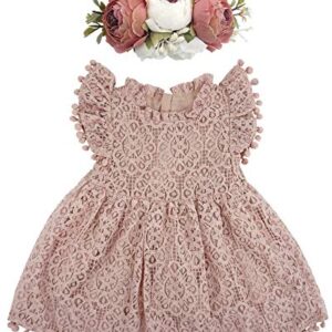 BGFKS Baby Girl Tutu Dress Elegant Lace Pom Pom Flutter Sleeve with Flower Headband Set