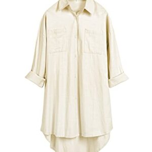 Bianstore Women Oversized Linen Shirts Blouses Tops Long Sleeve High Low Button Up Shirts