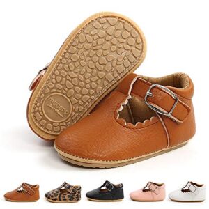 BiBeGoi Infant Baby Girls Boys T-Strap Pu Leather Mary Jane T-Bar Buckle Oxford Princess Wedding Dress Flat Shoes Anti-Slip Soft Rubber Sole Toddler First Walking Sneaker