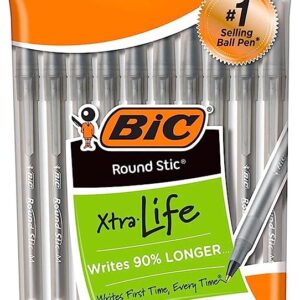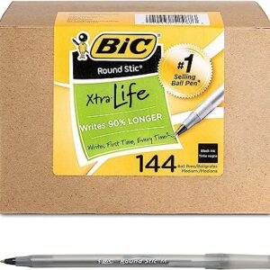BIC Round Stic Xtra Life Ballpoint Pen, Medium Point (1.0mm), Black, Flexible Round Barrel For Writing Comfort, 144-Count
