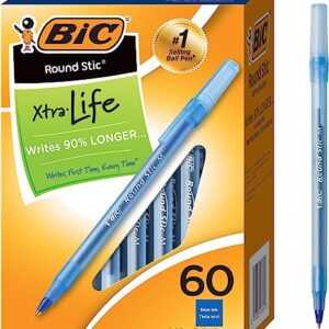 BIC Round Stic Xtra Life Ballpoint Pen, Medium Point (1.0mm), Blue, Flexible Round Barrel For Writing Comfort, 60-Count