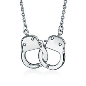 Biker Jewelry Handcuff Statement Necklace Working Lock Partners in Crime Stainless Steel Pendant for Women for Men 22 Inch