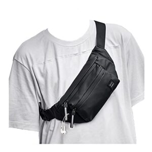 Black Fanny Pack for Men Women, Fashionable Crossbody Waist Bag Pack with 4-Zipper Pockets Adjustable Strap, Waterproof Anti-theft Mens Fanny Pack Belt Bag for Travel Hiking Running – Nylon
