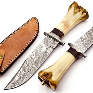 BK-3012 Handmade Damascus Steel 12.00 Inches Damascus Steel Bowie Knive – Rose Wood & Camel Bone with Brass & Micarta Spicier Handle With Beautiful Damascus Gurd