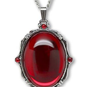 Blood Red Oval Stone In Silver Finish Pewter Frame Pendant Necklace