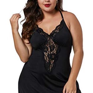 BLMFAION Sexy Satin Chemise Lace Trim Nihgtgowns S-5X