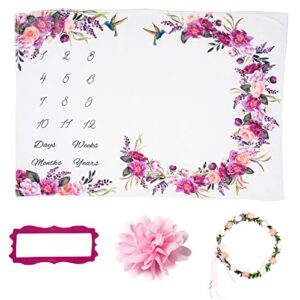 Bliss n Baby Milestone Blanket for Baby Girl – Perfect Baby Age Blanket with Growth Chart Blanket – New Moms Set, Wrinkle Free, Washable, Dryable Headband- 60″x40″
