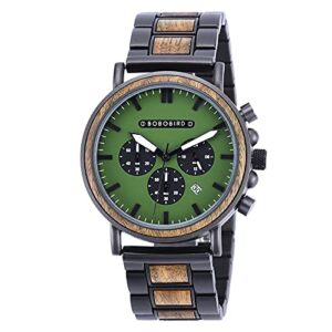 BOBO BIRD Fashion Stainless Steel Combined Chronograph Mens Wooden Watches Analog Quartz Casual Wood Wrist Watch for Men Father Day Christmas Gift