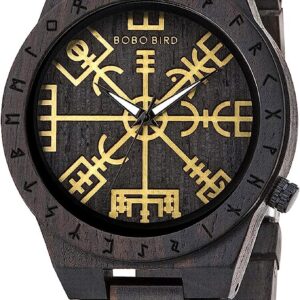 BOBO BIRD Handmade Wooden Mens Watch Unique Runic Circle Watches Golden Symbol of Vegvisir Watches Lightweight Fashion Quartz Wristwatch
