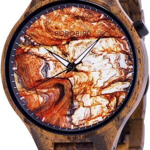 BOBO BIRD Mens Wooden Marbling Dial Wristwatches Adjustable Wood Band Fashion Casual Watch with Luminous Hands for Father Day