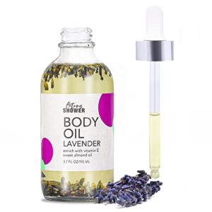 Body Oil – Lavender Oil with Sweet Almond Oil, Coconut Oil and Vitamin E Oil, Massage Essential Oil with Dried Lavender Flowers, Relaxing Body Oils for Women Dry Skin 3.7 fl oz, Gifts for Fathers Day