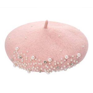 boderier Womens Beret Hat Pearl Rhinestone Wool Winter Warm Beanies Hat French Artist Hats