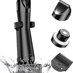 Body Hair Trimmer for Men, 2 in 1 Electric Groin Ball Trimmer Shaver, Pubic Hair Trimmer for Body Groomer, Waterproof Wet/Dry Clippers with LED Light, Standing Recharge Dock, Male Hygiene Razor
