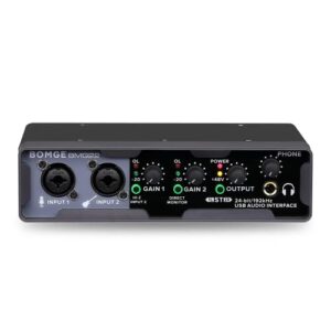 BOMGE USB Audio Interface(24 bit/192 kHz) with XLR,phantom power,Direct Monitoring,Loopback for PC Recording,Streaming,Guitarist,Vocalist and Podcasting