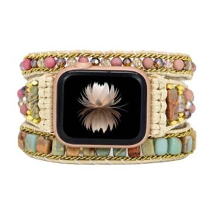 BOKIIWAY Handmade Beaded Boho Watch Bracelet Band Compatible with Apple Watch 38mm/40mm/41mm/42mm/44mm/45mm-Watch Strap for Iwatch Series 8/7/6/5/4/3/2/1/SE for Women (38/40/41mm, Mahogany Grain)