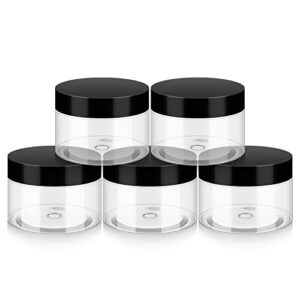 BonyTek Household 4oz Plastic Jars with Lids, 5 Pack BPA Free, Reusable, Refillable Transparent Cosmetic Containers for Bath Salts, Cosmetics, Powders, Beauty Product and Small Accessories