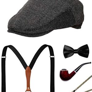 1920s Mens Costume Peaky Blinders Gatsby 1950s Fedora Hat Suspenders Bow Tie Pocket Watch