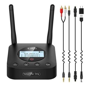 1Mii B06TX+ Long Range Bluetooth 5.0 Transmitter for TV /PC/Projector to 2 Wireless Headphones/Speakers, Bluetooth Adapter for TV w/ Screen Display Plug n Play, aptX Low Latency & HD Audio