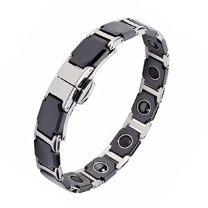 19CM Ceramic Bracelets Female Germanium Black Steel Magnetic Bangle Health Bio Energy Bracelet for Arthritis (Silver)