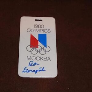 1980 MOSCOW OLYMPICS JOE GARAGIOLA SIGNED ORIGINAL PRESS BADGE PASS TICKET