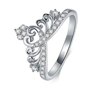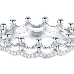 BORUO 925 Sterling Silver Ring, Cubic Zirconia Princess Crown Tiara Wedding Cz Band Eternity Ring Size 4-12