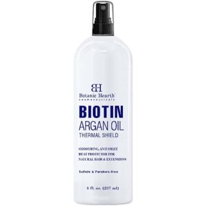 Botanic Hearth Heat Protectant Spray for Hair – With Argan Oil & Biotin – Conditioner & Thermal Protection for Hair from Heat, Tools, Flat Iron & Hot Blow Dry – for Men and Woman, Made in USA, 8 fl oz