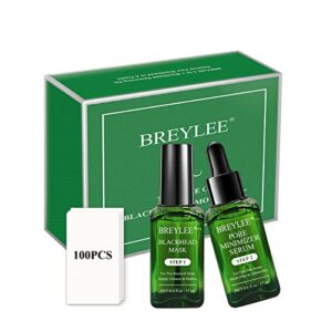 BREYLEE Blackhead Remover Mask, 3 in 1 Blackhead Removing Set Tea Tree Oil Blackhead Mask Kit, Nose Pore Strips and Pore Serum Set with 100pcs Strip Paper