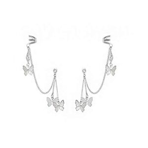 1Pair Ear Cuffs Butterfly Tassel Chain Earrings Jewelry for Women Girls, Silver Insect Butterfly Ear Crawler Climber Long Dangle Earrings