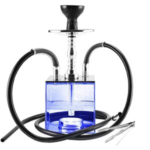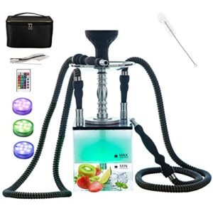 2 Hose Hookah Set Cube Hookah with large Opening Design,Portable Micro Modern Cube Acrylic Hookah with Silicone Hookah Bowl Two Leather Hose Coal Tongs Aluminum Stem,Remoted LED Light Custom Storage Bag