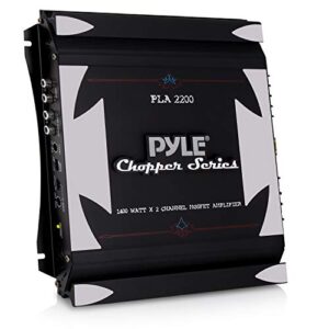 2 Channel Car Stereo Amplifier – 1400W Dual Channel Bridgeable High Power MOSFET Audio Sound Auto Small Speaker Amp w/ Crossover, Bass Boost Control, Gold Plated RCA Input Output – Pyle PLA2200, Black