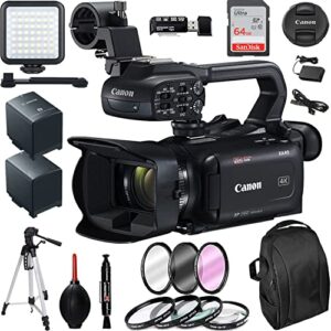 Canon XA40 Professional UHD 4K Camcorder Bundle + LED Light + 50″ Tripod + 64Gb Memory + Extra Battery + Lens Filter Kit + Backpack, Professional Accessory Bundle