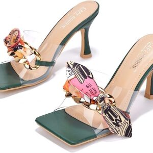 Cape Robbin Concur Sexy Stiletto High Heels for Women, Transparent Square Open Toe Shoes Heels with Bow