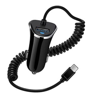 Car Charger Type C Coiled Cable for Pixel 6a, 3.4A USB Cigarette Lighter Fast Charging Adapter + 3ft C-Port Chord for Google 6 Pro 5a 5G 4a 3XL Galaxy S22 S21 S20 Ultra, USB C Car Charger USBC Cord