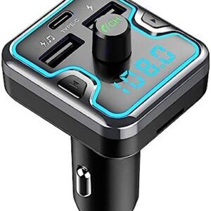 Car and Driver Bluetooth 5.0 FM Transmitter for Car, Dual USB and Type C PD 18W Car Charger Wireless Car Adapter Receiver Siri Google Alexa Assistant for iPhone 12/11/XR/Xs/X/ Samsung S10/S9 and More