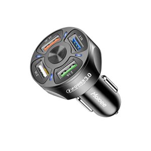 Car Charger Adapter, 4 Ports USB Fast Car Charger QC3.0, Quick Car Phone Charger with LED Light Display, Compatible with iPhone 12 Pro Max/11 Pro/XS/XR, Galaxy S20 Ultra and More (Black)