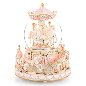 Carousel Snow Globe Gift, Music Box with Light 8-Horse Windup Musical Christmas Valentine Birthday Anniversary Present for Daughter Wife Girl Kids Clockwork Play Canon