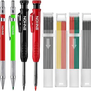Carpenter Pencils Kit with 40 Refills, 4 Pcs Mechanical Colorful Deep Hole Woodworking Pencils Built in Sharpener, Mental Carpentry Marking Scribe Tools for Architect Construction