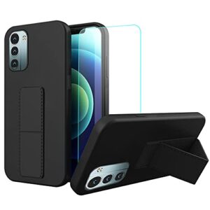 Case for Nokia G21 / G11 6.5″ 2022 Phone Case, Stand Case with Tempered Glass Screen Protector,Hide Telescopic Kickstand Shockproof Protective Cover Case for Nokia G21 /G11- Black