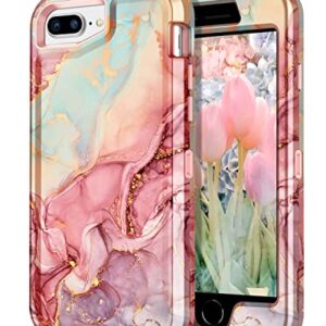 CASEFIV for iPhone 8 Plus Case, iPhone 7 Plus Case, iPhone 6 Plus Case, iPhone 6s Plus Case, Marble Heavy Duty Shockproof Full Body Hard PC+Soft Silicone Drop Protective Women Girls Case, Rose Gold