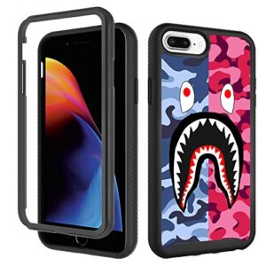 Case for iPhone 6 Plus 6s Plus, iPhone 8 Plus Cool Camo Case, iPhone 7 Plus Cases for Boys Girls Design Shockproof Rugged Dual Layer Bumper Full-Body Protective Cover 5.5 inch – Pink Blue Shark