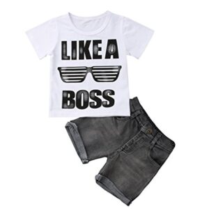 Casual Toddler Kids Boys Girls Tops T-Shirt Denim Pants Outfits Set Clothes 1-6Y