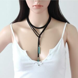 Cathercing Bohemian Long Choker with Turquoise Pendant Sexy Rock Tribal Vintage Necklace for Women Jewelry Accessories (black)