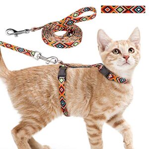Cat Harness and Leash Set Geometric Pattern Escape Proof Adjustable for Kitty Outdoor Walking