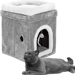 Cat Condo, Plush Wrap Kitten Play House, Easy to Fold and Store, Soft Top Perch, Dangling Mouse Toy, Private Kitten Nest, Perfect for Cat and Kitten,L