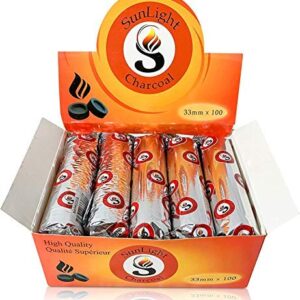 Charcoal Tablets for Incense– Quick Light Charcoal Tablets – Charcoal Disk Lights – 33 mm Resin Burner Rolls – Pack of 100 Coal Briquettes – Charcoal Burner – Instant Fire Coal Tablet