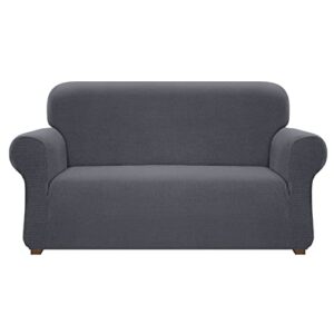 Cherrypark High Stretch Couch Cover for 2 Cushion Couch Universal Waterproof 2 Seat Sofa Covers Non Slip Sofa Slipcovers with Elastic Hem Living Room Furniture Protector (Medium, Gray)
