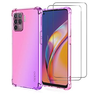 Chengmi ZMONE Phone Case for Oppo Reno 5 LiteOppo A94 4G F19 Pro Case with Screen Protector 2 Pack, Clear Gradient Soft TPU Bumper Slim AntiScratch Shockproof Protective Cover PinkPurple